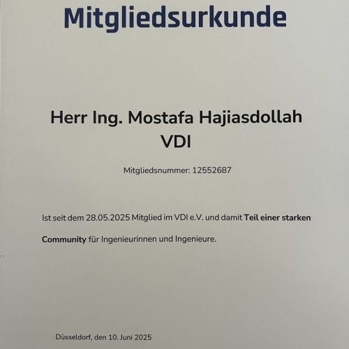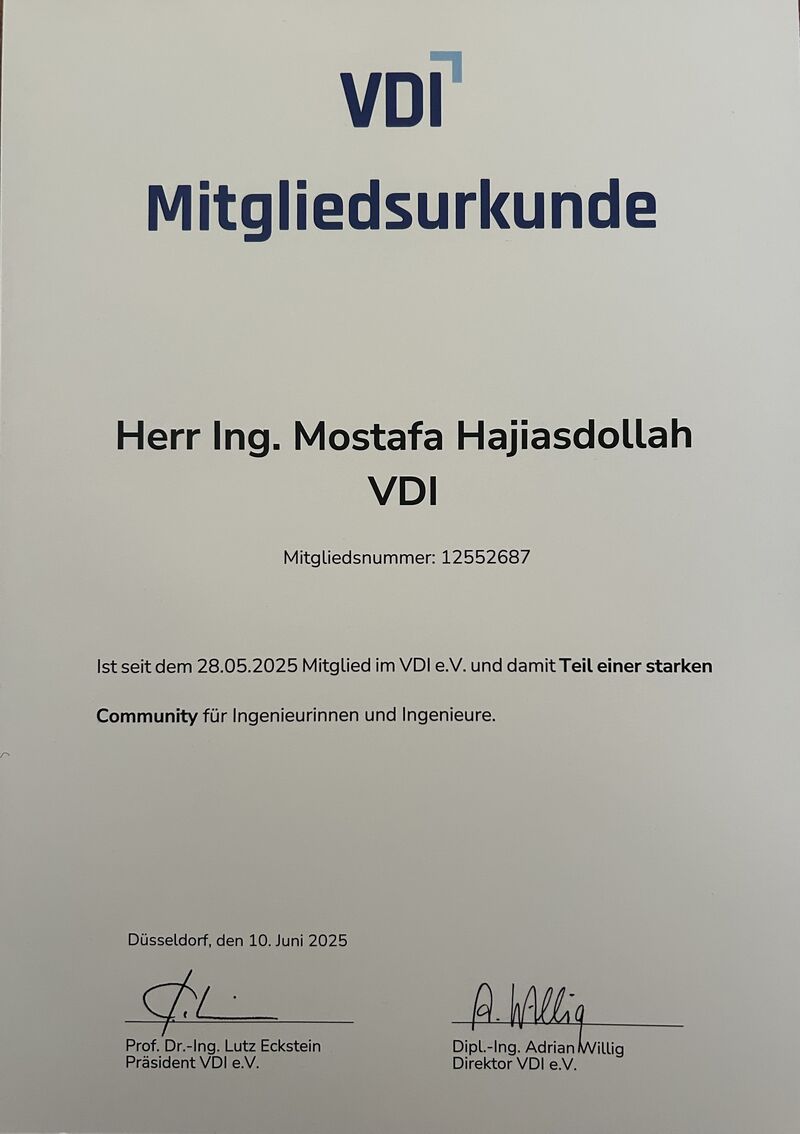 Mitglied im VDI – Verein Deutscher Ingenieure